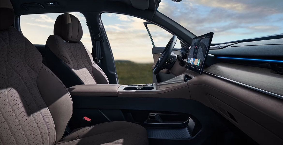 Центральный дисплей 15,6" с разрешением 2,5K и процессор Snapdragon 8155 обеспечивают быструю работу интерфейса. Основная информация выводится на экране борткомпьютера 10,3". Поддерживаются Apple CarPlay, Android Auto и беспроводная зарядка.