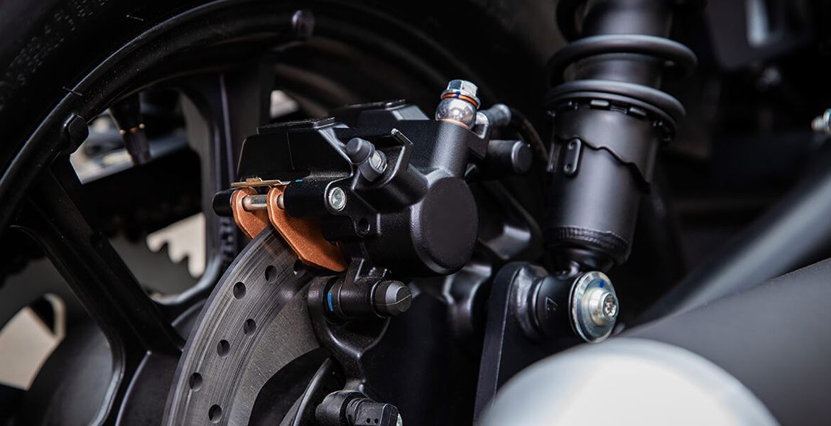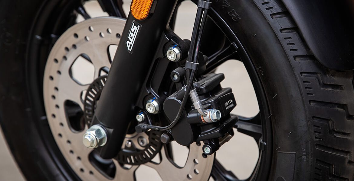 За безопасность в мотоцикле отвечает надёжная тормозная система, которая в любой момент поможет остановить технику в считаные секунды на разных дорожных покрытиях и предотвратить аварию.