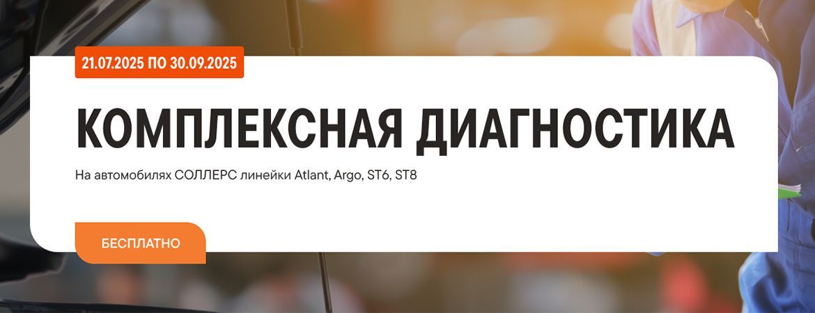 Для владельцев автомобилей СОЛЛЕРС линейки Atlant, Argo, ST6, ST8 наш сервисный центр бесплатно проводит комплексную диагностику.