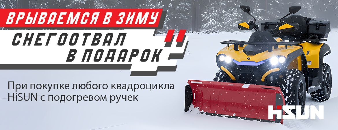 При покупке квадроцикла HiSUN с подогревом ручек, вы получаете снегоотвал в подарок!