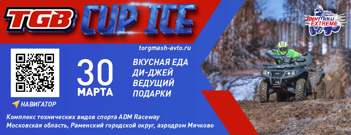 30 марта в ADM Raceway состоятся соревнования TGB CUP ICE - это официальный дебют премиального бренда TGB на гоночных трассах России. И компании ТОРГМАШ EXTREME выпала большая честь стать организатором данного мероприятия.